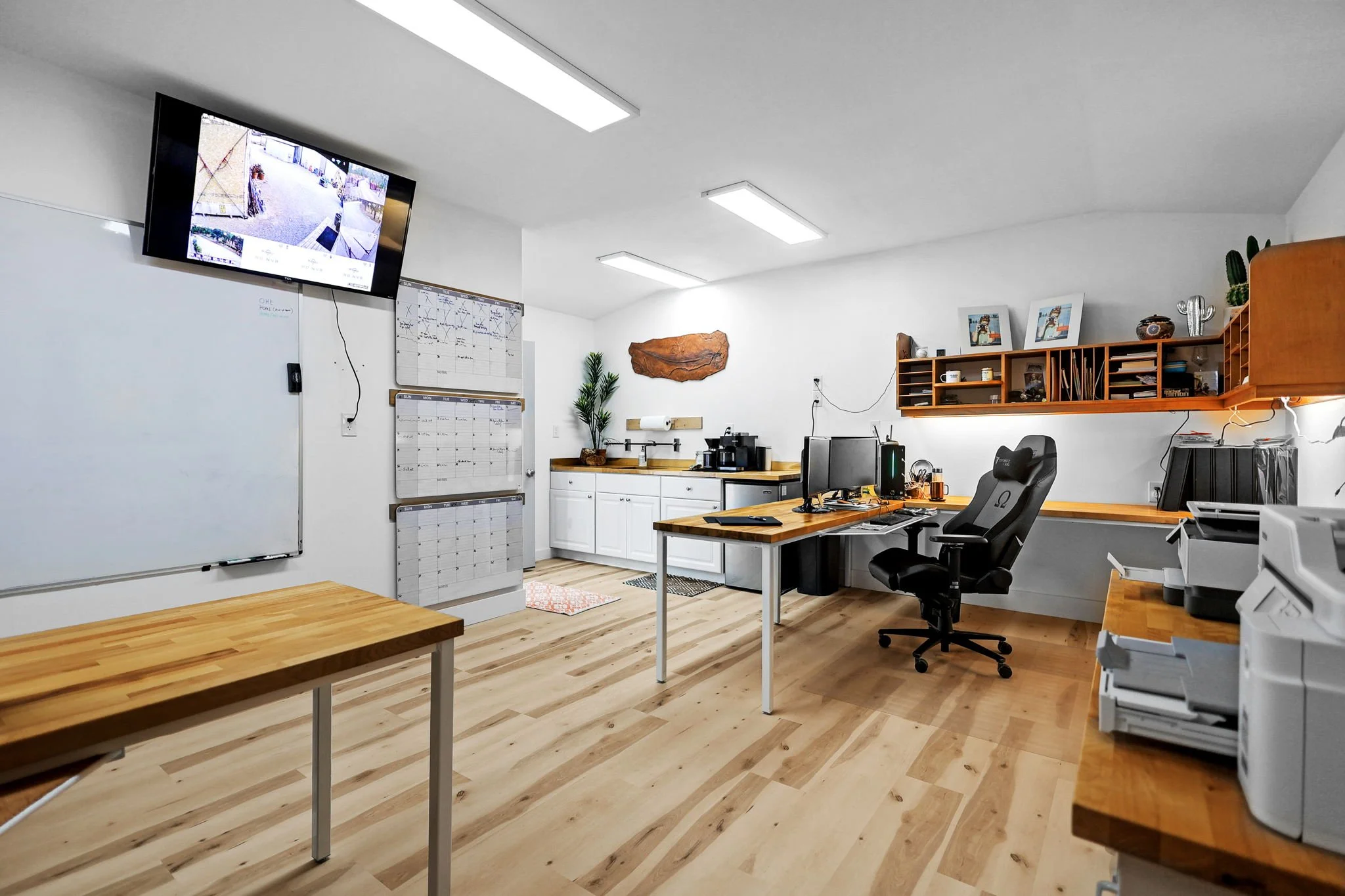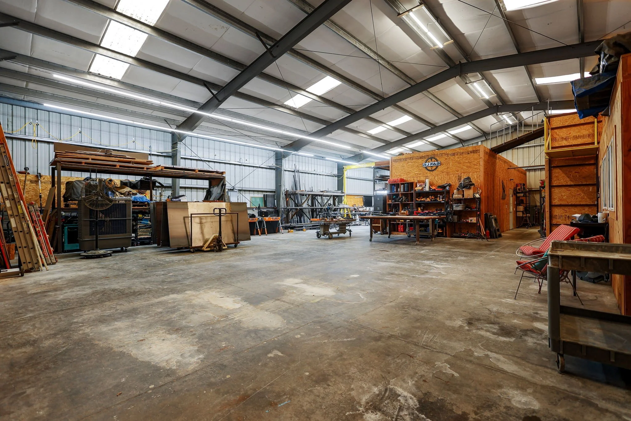 7,000 sq. ft. warehouse/shop - flexible space for additional indoor event use, storage, or business expansion. Equipped with a full kitchen and bath plus a separate 600 sf office